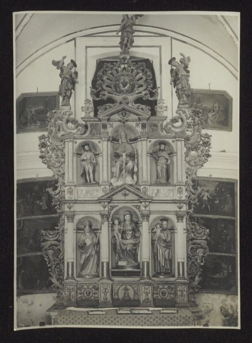 Liariis. Chiesa della Madonna. Altare del sec. XVII con contorno di fregi in stile barocco