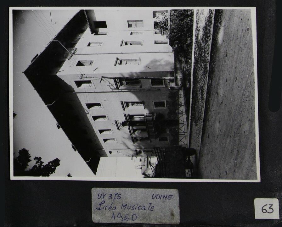 Udine: veduta del palazzo storico che accoglie il Liceo musicale "Caterina Percoto". In primo piano a sinistra, un camion.