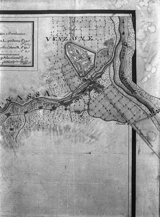 Riproduzione fotografica di una mappa topografica della città di Venzone.