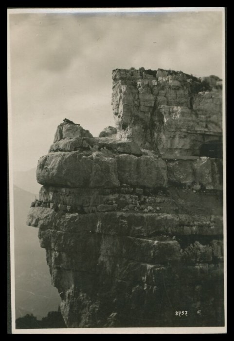 Militare disteso su uno sperone di roccia che osserva con un cannocchiale