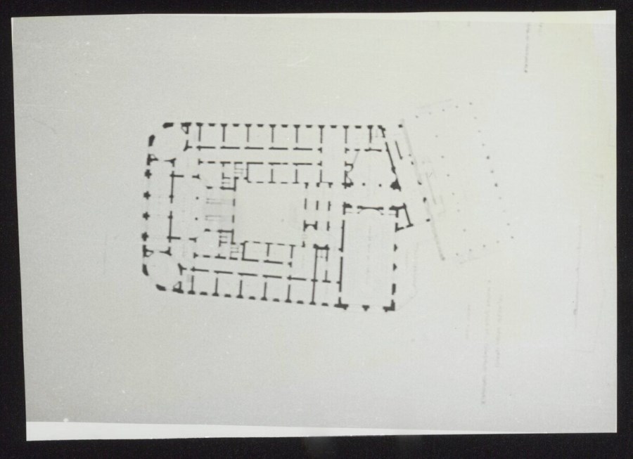 Riproduzione fotografica di una tavola con pianta dell'interno di Palazzo D'Aronco, sede del Municipio di Udine, dai disegni dell'architetto Raimondo D'Aronco. Il palazzo fu progettato nel 1888, finito di costruire nel 1925, e rifinito nei primi anni '30, in stile Liberty.