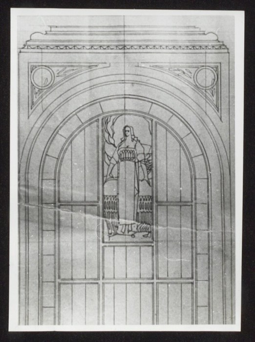 Riproduzione fotografica di un particolare decorativo dell'interno di Palazzo D'Aronco, nuova sede del palazzo comunale di Udine, dai disegni di progetto dell'architetto Raimondo D'Aronco. Il palazzo fu progettato nel 1888, finito di costruire nel 1925, e rifinito nei primi anni '30, in stile Liberty.