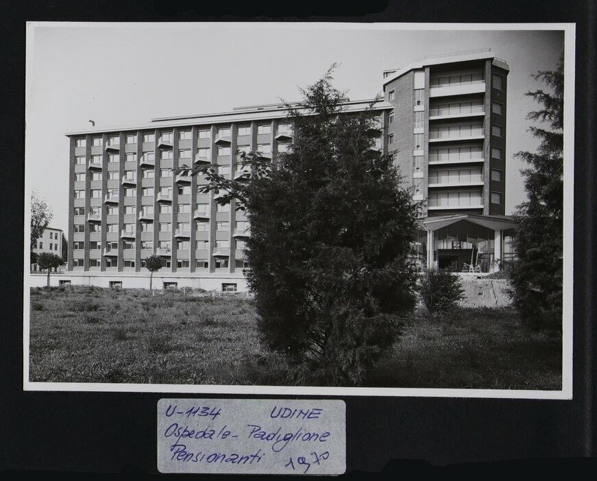 Udine: padiglione Pensionanti (inizi degli anni Sessanta) appartenente, assieme agli altri sette padiglioni, all'Azienda Ospedaliero-Universitaria "Santa Maria della Misericordia" (iniziata a costruire nel 1924). L'edificio, così come gli altri dell'ospedale tra il 1924 e il 1963, venne realizzato su progetto dell'architetto Eugenio Mariutti.