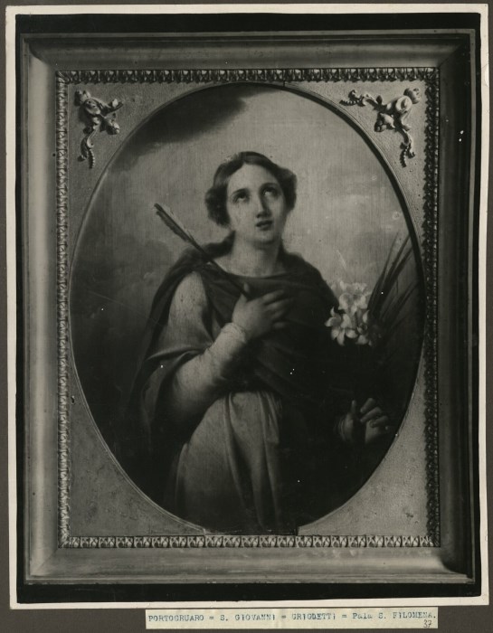 Riproduzione fotografica della pala raffigurante "Santa Filomena" a opera del Grigoletti e conservata presso la Chiesa di San Giovanni Evangelista a Portogruaro.