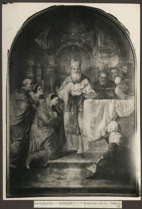 Riproduzione fotografica di una pala raffigurante la "Presentazione di Gesù al tempio" a opera di Agostino Pantaleoni e conservata presso la Chiesa di Santa Maria della Purificazione a Portovecchio di Portogruaro.