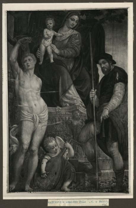 Riproduzione fotografica della pala dipinta dall'Amalteo e raffigurante la "Madonna con Bambino tra due Santi ed un angelo musicante" conservata presso la Chiesa di Sant’Andrea Apostolo di Castions di Zoppola.