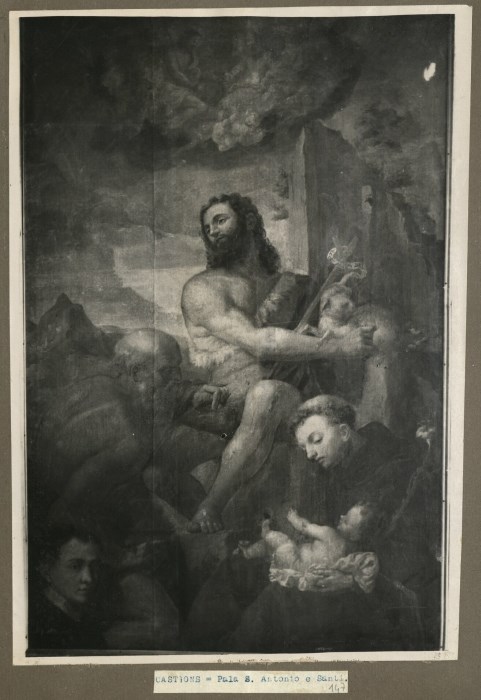 Riproduzione fotografica della pala dipinta raffigurante la "Sant'Antonio, San Giovanni Battista ed altri Santi" conservata presso la Chiesa di Sant’Andrea Apostolo di Castions di Zoppola.