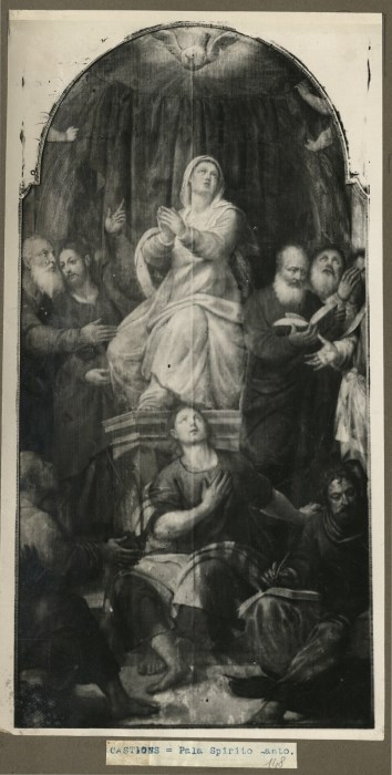 Riproduzione fotografica della pala dipinta e raffigurante la "La discesa dello Spirito Santo" conservata presso la Chiesa di Sant’Andrea Apostolo di Castions di Zoppola.