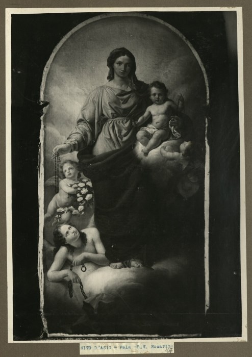 Riproduzione fotografica di una della pale d'altare raffigurante "Beata Vergine del Rosario con Bambino" e conservata presso la Chiesa di San Michele Arcangelo di Vito d'Asio.