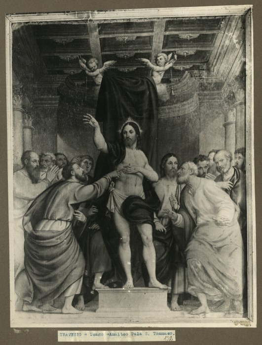 Riproduzione fotografica della Pala dipinta da Pomponio Amalteo raffigurante "L'incredulità di San Tommaso" e conservata presso la Chiesa di San Tommaso Apostolo a Usago di Travesio.