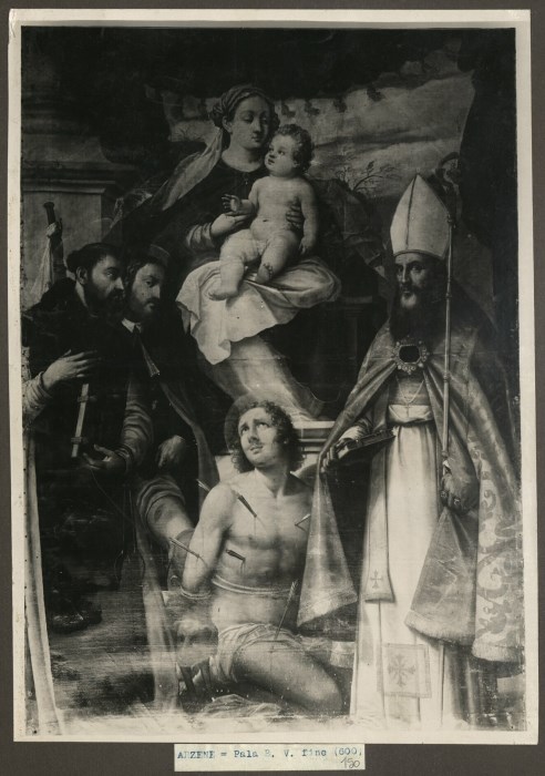 Riproduzione fotografica della pala dipinta raffigurante la "Madonna con Bambino tra Santi" conservata presso Chiesa di San Michele Arcangelo ad Arzene.