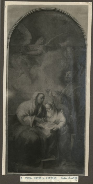 Riproduzione fotografica della pala dipinta raffigurante "L'educazione di Maria" a opera di Giovan Battista Pittoni e conservata presso il Duomo di San Vito al Tagliamento.