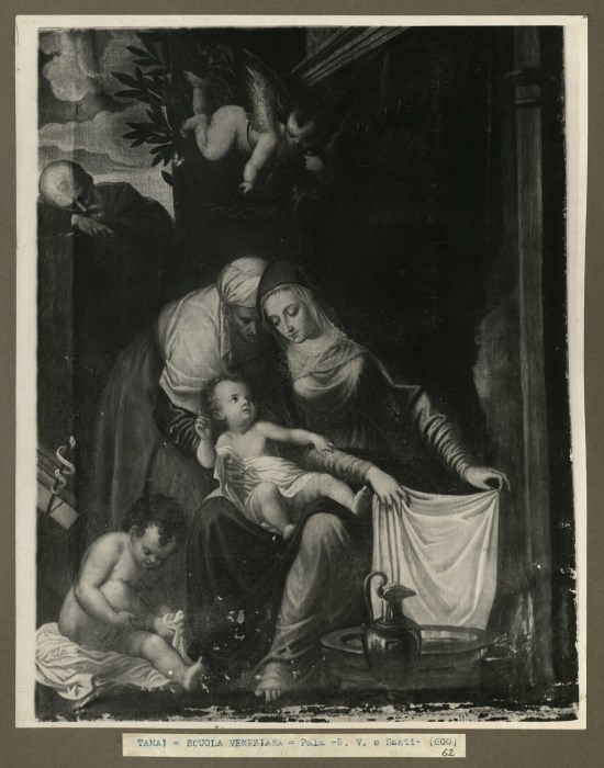 Riproduzione fotografica della Pala raffigurante "Madonna con Bambino e Santi" conservata presso la Chiesa di Sant'Anna già Santa Margherita a Tamai di Brugnera.