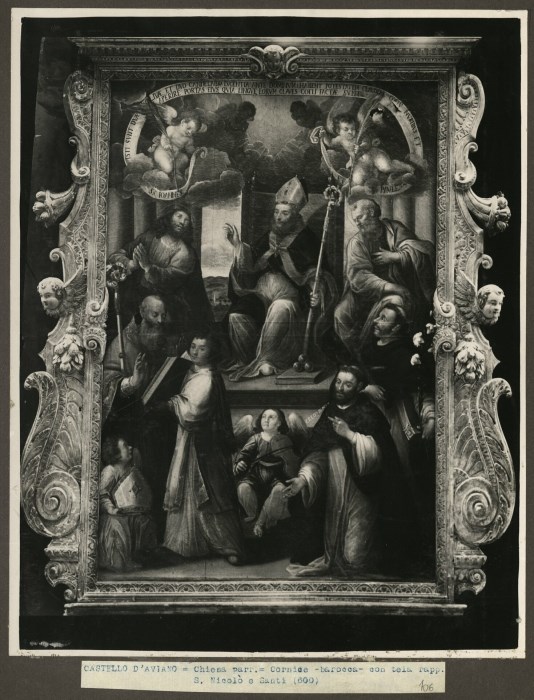 CASTELLO D'AVIANO = Chiesa Parr. = Cornice -barocca- con tela rapp. S. Nicolò e Santi