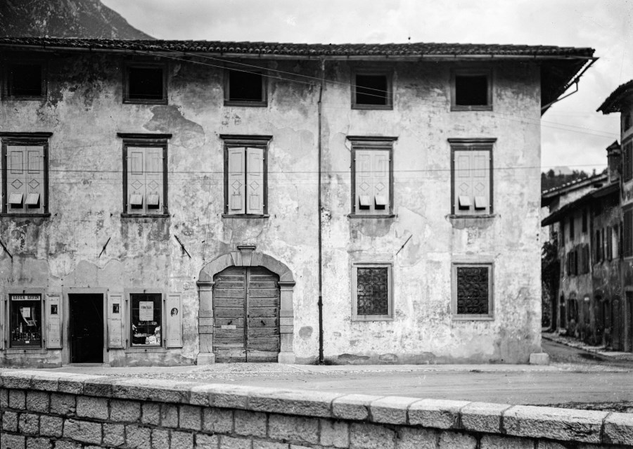 Una palazzina di un paese di montagna con negozio di alimentari annesso.
