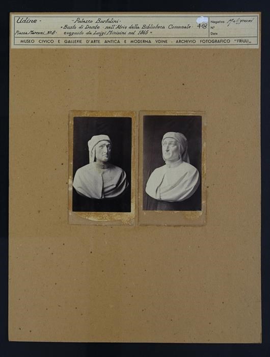 Udine, Palazzo Bartolini, Biblioteca Civica "Vincenzo Joppi": busto che rappresenta Dante Alighieri dello scultore veneziano Luigi Minisini (1865), collocato nell'atrio del palazzo nel maggio 1866.