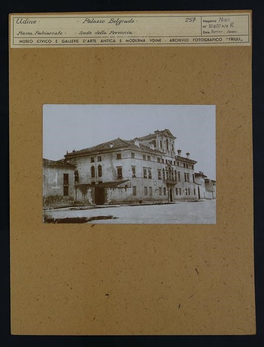 Udine, piazza Patriarcato: veduta di Palazzo Antonini-Belgrado (fine del Seicento), prima di proprietà della famiglia Antonini, poi della famiglia Belgrado. Nel 1891 diventò sede dell’Amministrazione provinciale di Udine.