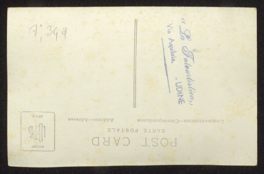 Immagine della sfilata militare in piazzale Umberto I°, oggi piazza Primo Maggio, in occasione della conclusione celebrativa del XII anno dell'era fascista, il 28 ottobre 1934. La ripresa fotografica è effettuata dal colle del Castello, gremito di pubblico. In un articolo del 27/10/1934 su "Il Popolo del Friuli. Organo del Partito Nazionale Fascista" è possibile conoscere il programma della manifestazione.
