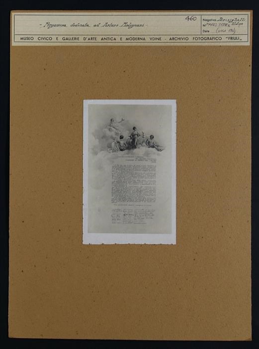 Udine: pergamena dedicata all'inventore Arturo Malignani con cui viene proclamato Cavaliere del Lavoro l'8 dicembre 1904, numero brevetto 184 (diventando membro della Federazione Nazionale dei Cavalieri del Lavoro), che ha svolto i suoi studi e la sua attività legati all'industria del cemento (anche se vengono ricordate pure le sue "esplorazioni per la ricerca delle rocce"). La parte superiore è occupata da un'incisione con figure allegoriche in cielo, tra le nuvole. Subito sotto, la dedicata "ALL'ILLUSTRISSIMO CONSOCIO/ SIG. ARTURO MALIGNANI/ CAVALIERE AL MERITO DEL LAVORO/ UDINE". In fondo, firme.