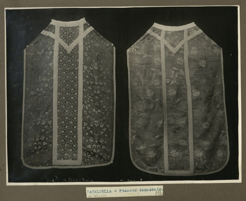 Riproduzione fotografica di due pianete damascate conservate presso la Chiesa delle Sante Fosca e Maura a Basaldella di Vivaro.