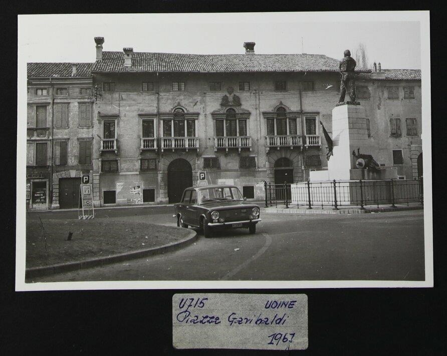 Udine: veduta di piazza Garibaldi con Palazzo Antonini-Mangilli-del Torso (1577) e, in primo piano a destra, il monumento a Garibaldi di Guglielmo Michieli, inaugurato il 28 agosto 1886.