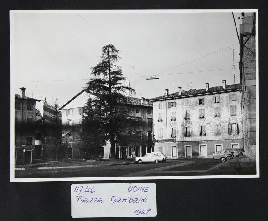 Udine: veduta di piazza Garibaldi con, a destra, l'ex Istituto superiore a carattere tecnico (1866) intitolato ad Antonio Zanon nel 1883 (da metà Novecento circa l'edificio è sede della Scuola Media Statale "Alessandro Manzoni"). A sinistra, uno scorcio di via del Gelso con un condominio di recente costruzione. Questa strada venne ristrutturata dal punto di vista urbanistico avvenuta tra il 1949 e il 1956.