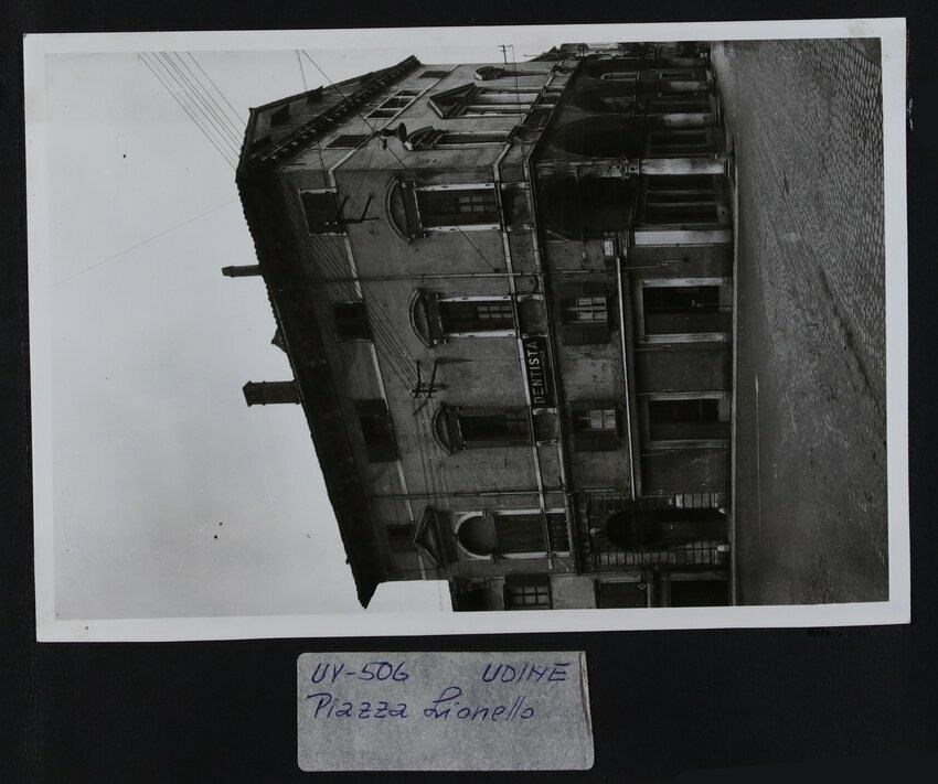 Udine, via Nicolò Lionello 8: veduta del palazzo storico che, attualmente, è sede dell'Agenzia Generali e che, tempo addietro, accolse uno studio dentistico, come si legge dall'insegna collocata al centro della facciata.