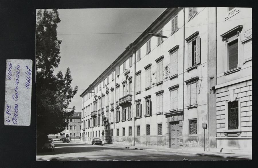 Udine, piazza Patriarcato: veduta in prospettiva di palazzo Patriarcale o Arcivescovile (degli inizi del Settecento). A sinistra, il Giardino Ricasoli.