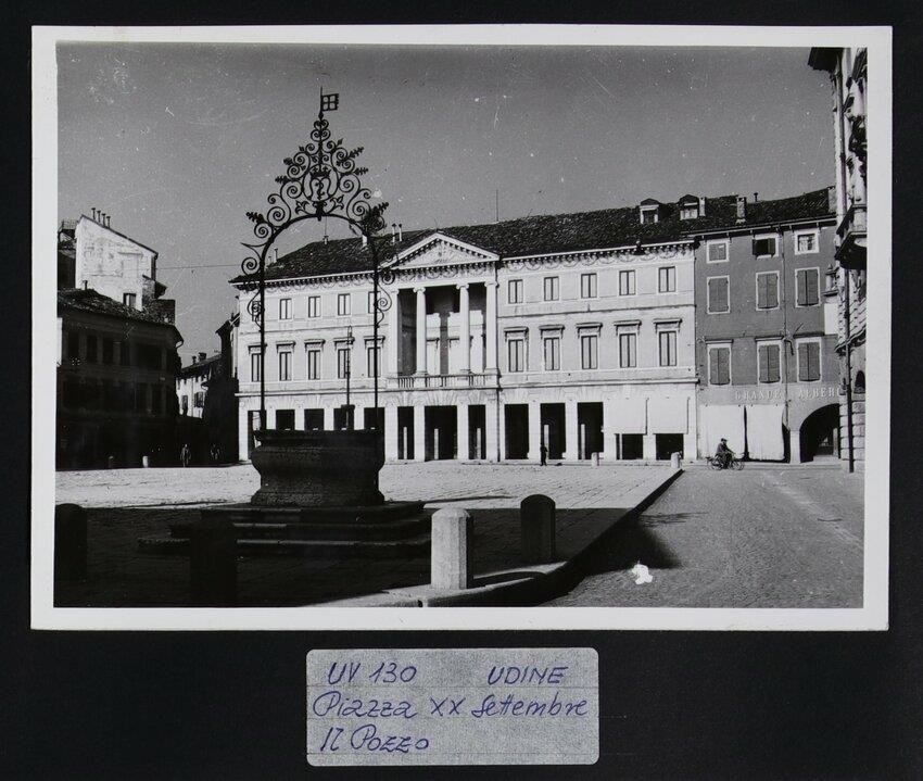 Udine, piazza XX Settembre (chiamata un tempo "piazza dei grani"): Palazzo Antivari-Kechler (iniziato a costruire nel 1833). Realizzato su progetto di Giuseppe Jappelli, si sviluppa su tre piani e presenta una loggia centrale con timpano e colonne ioniche. In primo piano a sinistra, il pozzo dell'antico Ospedale.