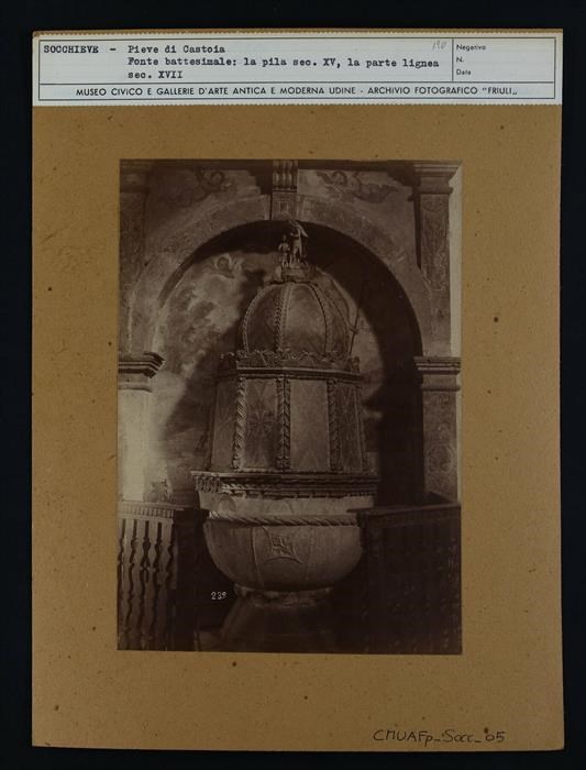 - Pieve di Castoia/ Fonte battesimale: la pila sec. XV, la parte lignea sec. XVII