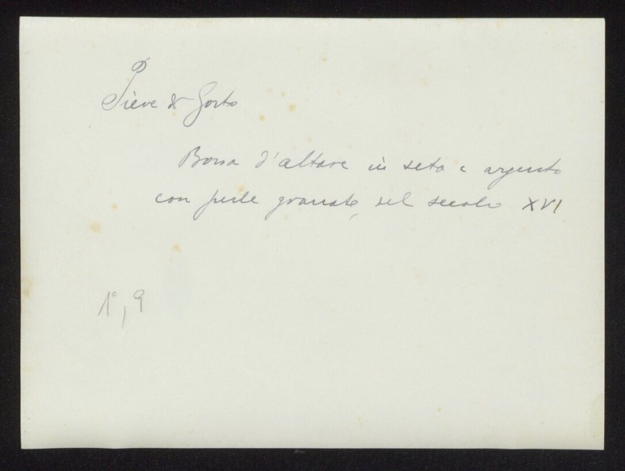 Pieve di Gorto. Borsa d'altare in seta e argento con perle granate, del sec. XVI