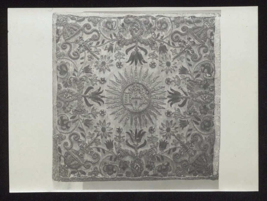 Borsa d'altare in seta e argento con perle granate, del secolo XVI, conservata presso la Pieve di Santa Maria di Gorto, nel comune di Ovaro.