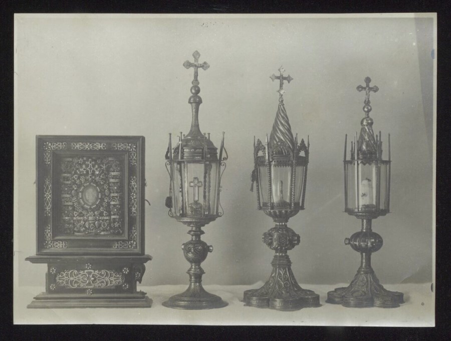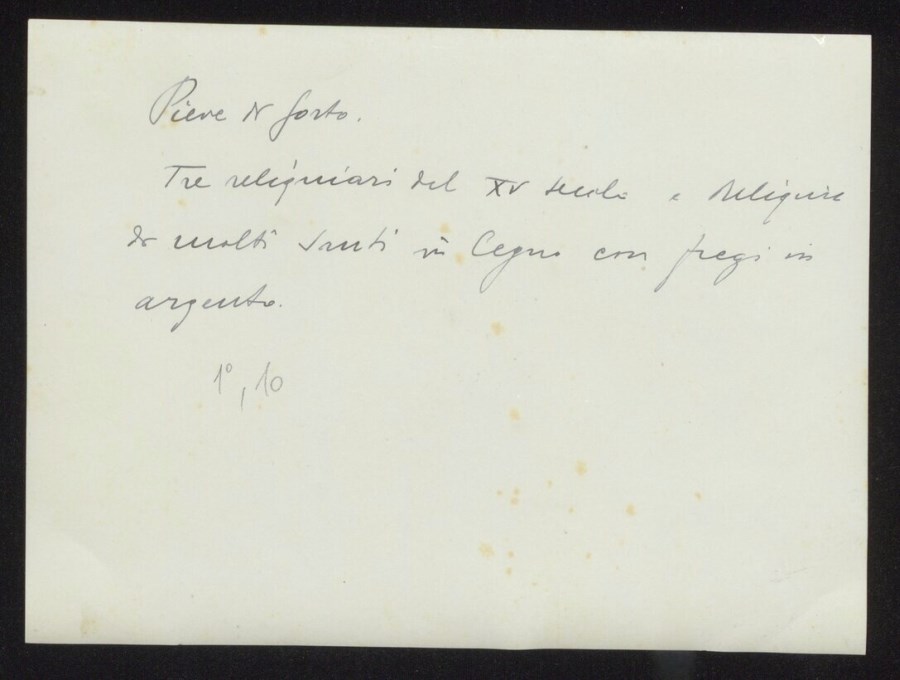 Pieve di Gorto. Tre reliquari del XV secolo e reliquie di molti Santi in legno con fregi in argento