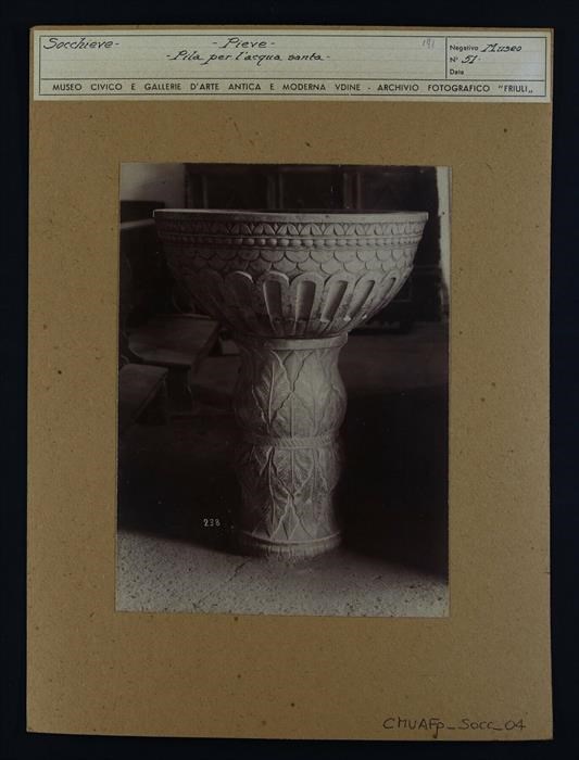Socchieve, Castoia, pieve di Santa Maria Annunziata: acquasantiera marmorea.