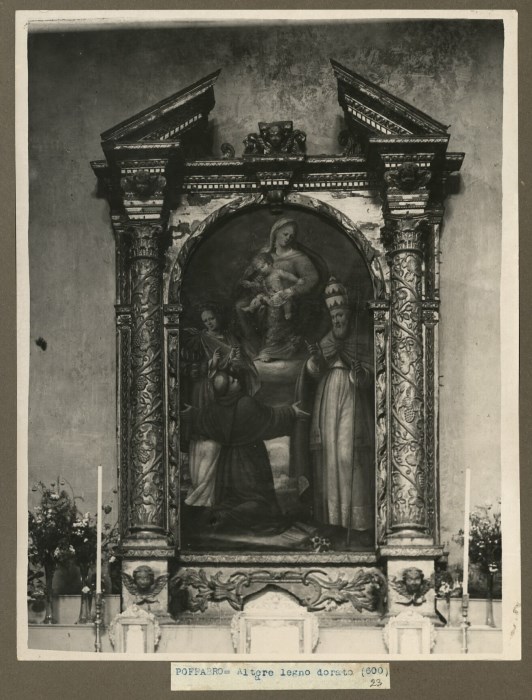 Altare in legno dorato con pala della " Vergine con Bambino tra i Ss. Lucia e Urbano e Sant'Antonio" conservato presso la Chiesa di San Nicolò Vescovo a Poffabro