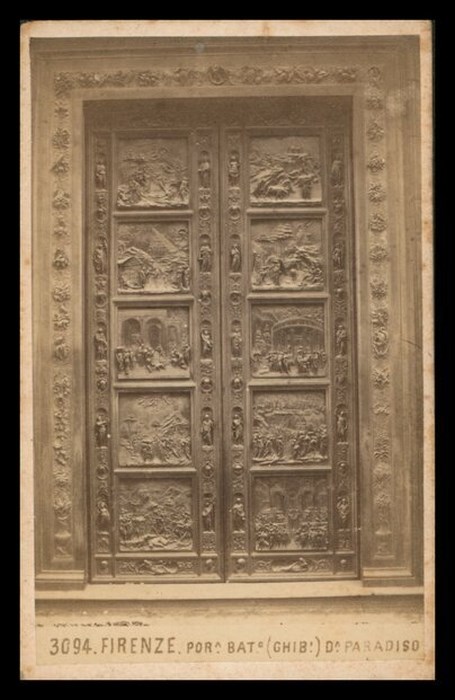 Riproduzione fotografica del Portale del Paradiso a opera del Ghiberti, portale est nel Battistero di fronte al Duomo di Firenze.