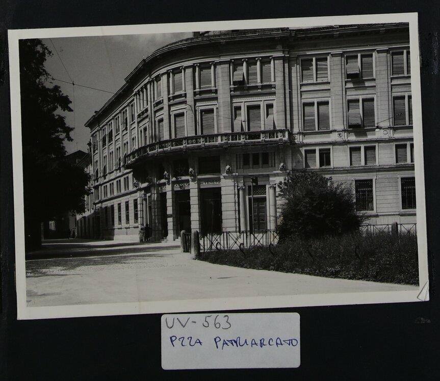 Udine, piazza Patriarcato, angolo con via Lovaria: palazzo, già sede della Banca Cattolica e attualmente della Procura, progettato da Luigi Taddio su disegno di da D’Aronco (1907-1908). Taddio, nel dicembre del 1907, aveva presentato il progetto del nuovo edificio in sostituzione del precedente, che era la sede provvisoria.