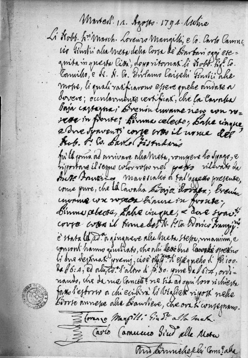 Riproduzione fotografica di manoscritto cartaceo autografo dell' 11 agosto 1794