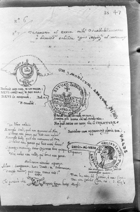 Riproduzione fotografica di un manoscritto in lingua latina e italiana