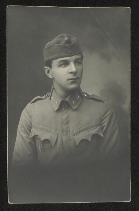 Ritratto a mezzobusto di un soldato. Questa immagine è esposta in cornice nella stanza del soldato-fotografo impegnato sul fronte durante il primo conflitto mondiale.