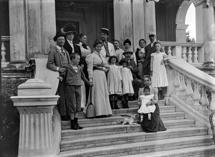 Ritratto di famiglia nobile su scalinata dell'ala settecentesca del castello di Colloredo Mels di Monte Albano.