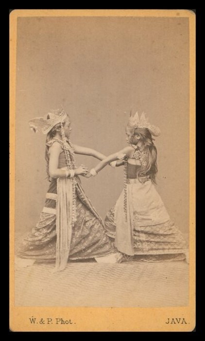 Ritratto di giovani giavanesi (Java) danzatrici con tipici copricapi