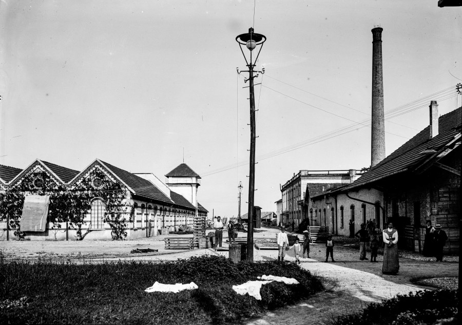 Ritratto di alcuni operai e alcuni bambini nei cortili dello Stabilimento Cormor del Cotonificio Udinese