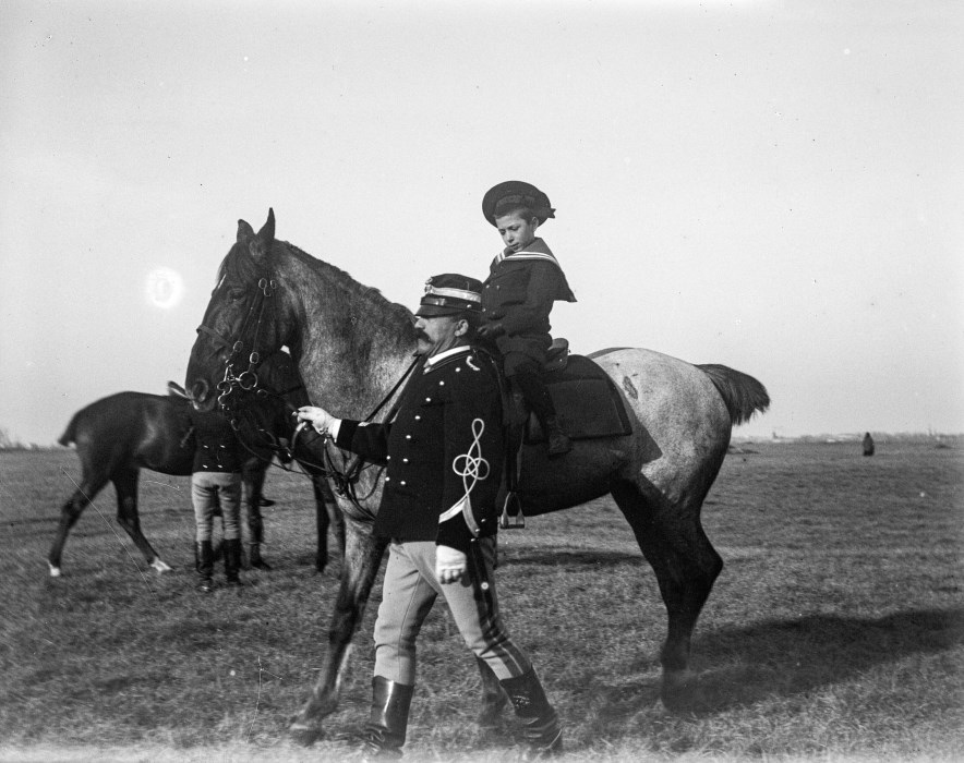 Ritratto di un militare e un bambino a cavallo