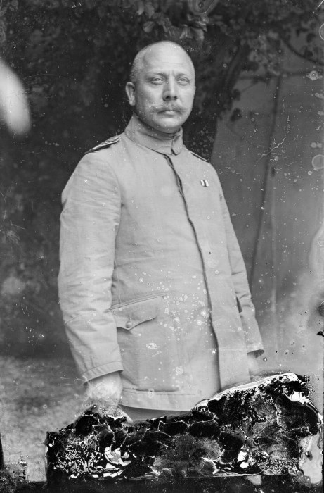 Ritratto di un soldato austro-ungarico in esterno probabilmente in un giardino.