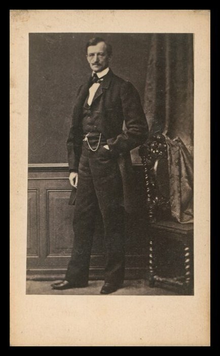 Ritratto in studio a figura intera di un uomo identificabile, grazie all'iscrizione sul verso della fotografia, con Władysław Bentkowski (nato a Varsavia nel 1817, morto nel 1887 a Poznań). Ufficiale prussiano, partecipò alle rivolte nazionali polacche nel XIX secolo e alla rivoluzione in Ungheria nel 1848-1849, giornalista e politico di Poznań oltre che membro del Consiglio della Società Centrale Economica del Granducato di Poznań. L'immagine è una copia dello scatto dello studio fotografico berlinese L.Haase e Comp. Una copia conservata nella Biblioteca Nazionale di Polonia, data lo scatto al 1861.