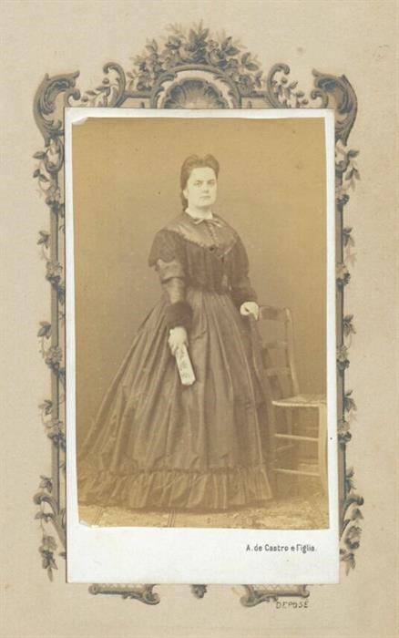 Ritratto femminile in studio accanto ad una sedia impagliata