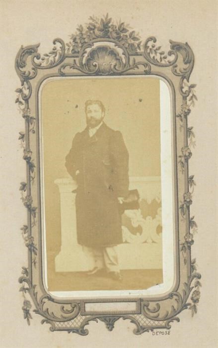 Ritratto maschile in studio; sullo sfondo finta ringhiera marmorea