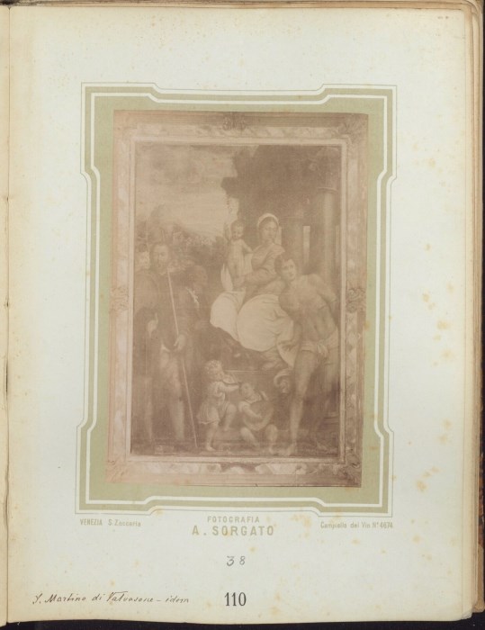 Riproduzione fotografica del dipinto presente nella Chiesa parrocchiale di San Martino al Tagliamento, opera di Pomponio Amalteo, datata 1565 e raffigurante la "Madonna del Rosario con i Ss. Sebastiano, Francesco d'Assisi e Rocco".