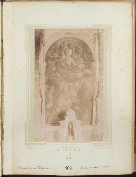 Riproduzione fotografica della pala dell'altar maggiore della Chiesa parrocchiale di San Martino al Tagliamento, dipinta da Pomponio Amalteo nel 1547 e raffigurante Cristo in gloria con i Santi Martino, Stefano e Giovanni Battista.